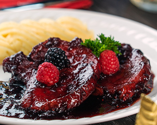 Chuleta de cerdo en glaseado de frutos rojos y habanero