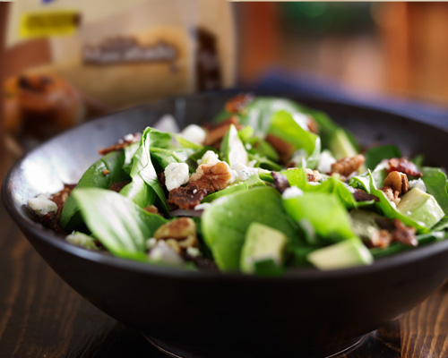 Ensalada de espinaca y tocino balsámico