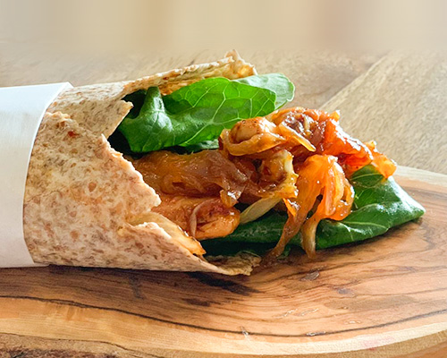 Wrap de pollo con cebollas caramelizadas al chipotle